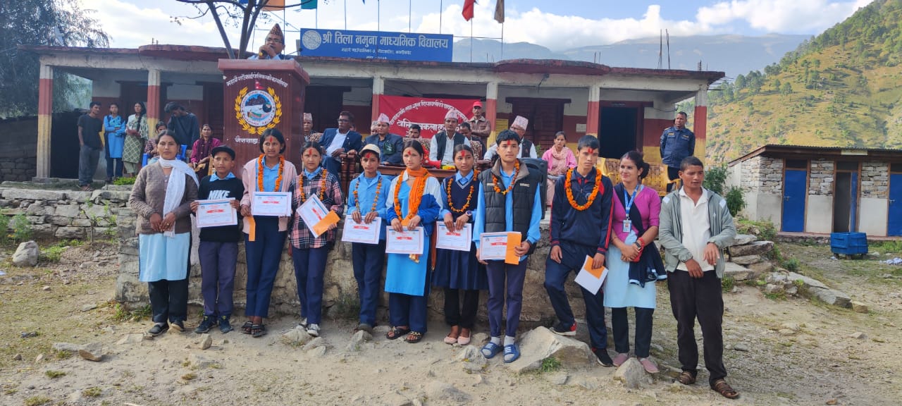 आ.व.०७९/०८०राष्ट्रपति रनिङ्ग शिल्ड प्रतियोगिताको लागि प्रारम्भिक छनौटमा परेका विजेता विद्यार्थीहरुलाई पुरस्कार वितरण गर्दै गा.पा. अध्यक्ष ज्यू